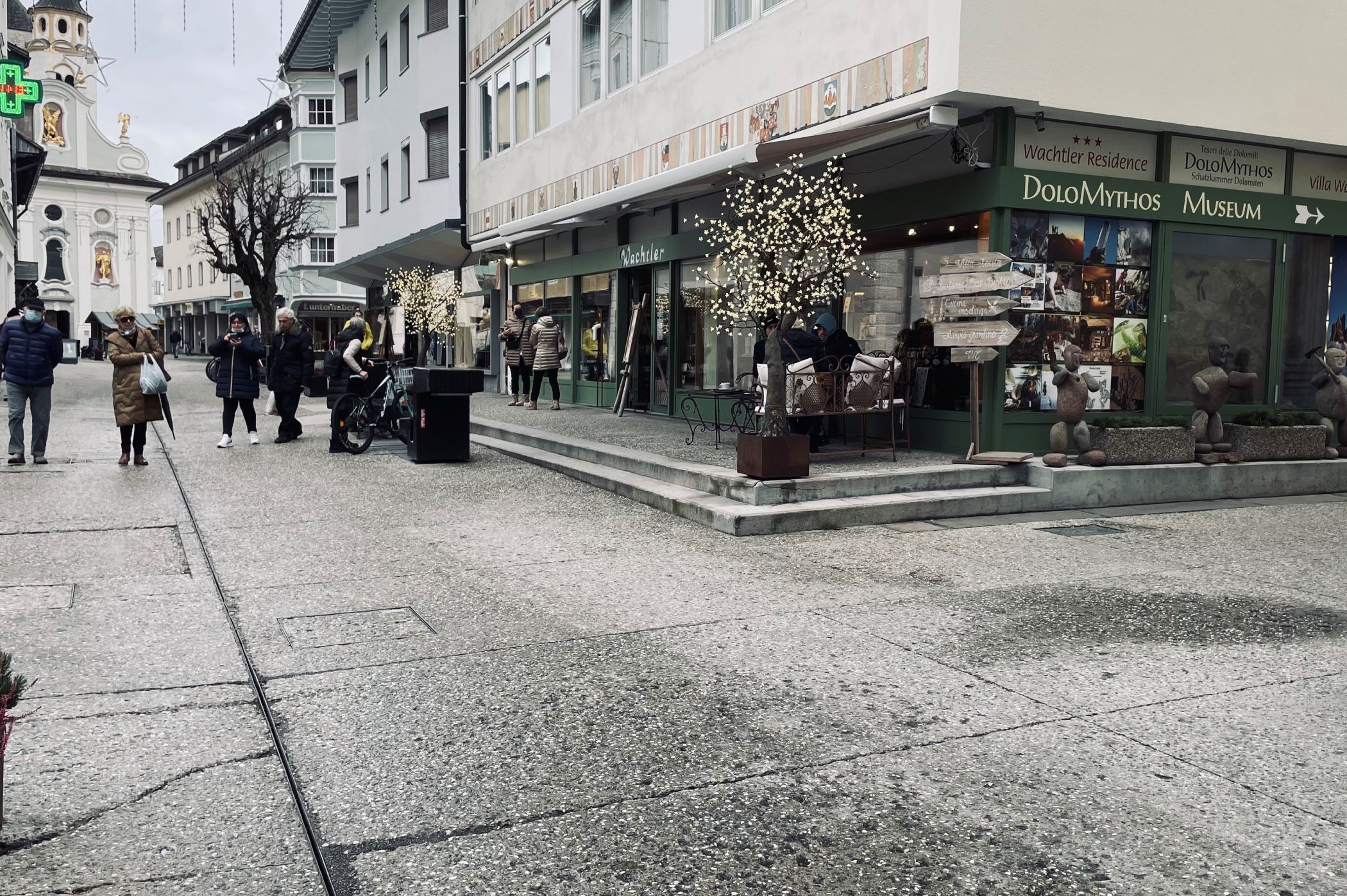 Nach weiteren 200 Metern sehen Sie an der rechten Seite das Geschäft Wachtler (gegenüber der Apotheke). Biegen Sie vor dem Geschäft rechts in die Gasse ein.
